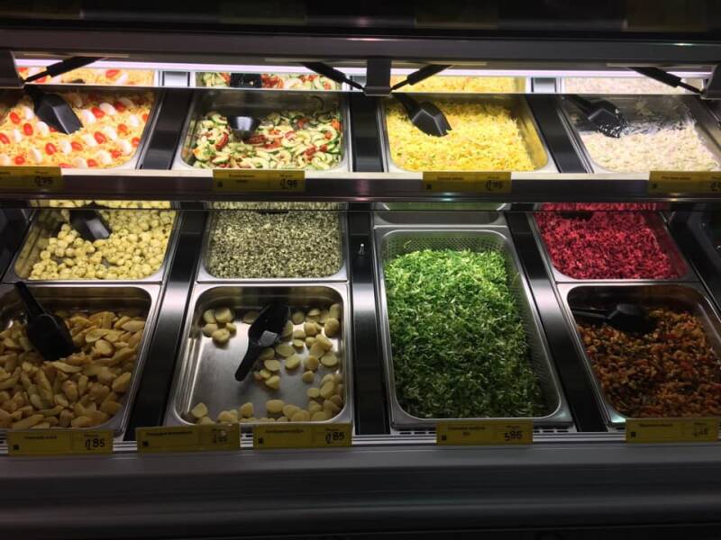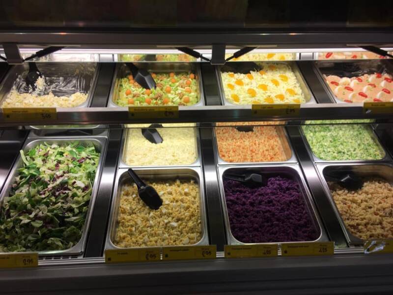 Belgische salade, Mosterd-dille salade, zomermix, Waldorf salade, stoofschotel, gemengde groente, roerbakgroente, bami-nasi mix, dessert (witte en rode kwark) en fruitsalade.
